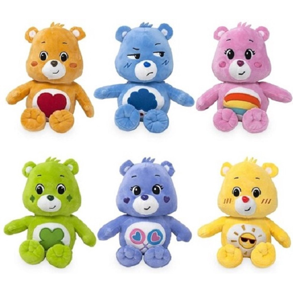 From the well-known TV series Care Bears (Care Bears), there are the cuddly characters to play with and collect as plush figures. The Care Bears live together in cloud country. The bears differ in their colours and symbols on their bellies. Together, they master every difficulty. There are many characters to discover such as Cheer Bear, Funshine Bear, Love-a-Lot Bear, Friend Bear and Wish Bear.