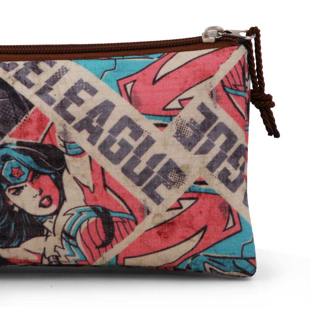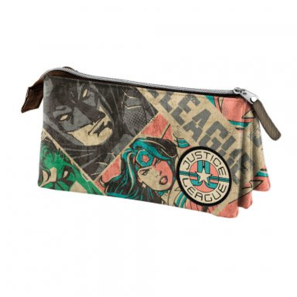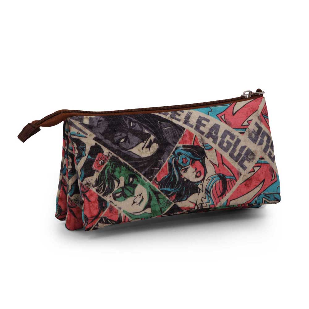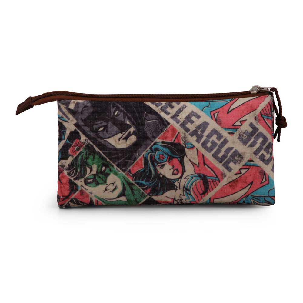 A three-pocket pencil case featuring the famous Justice League superheroes.