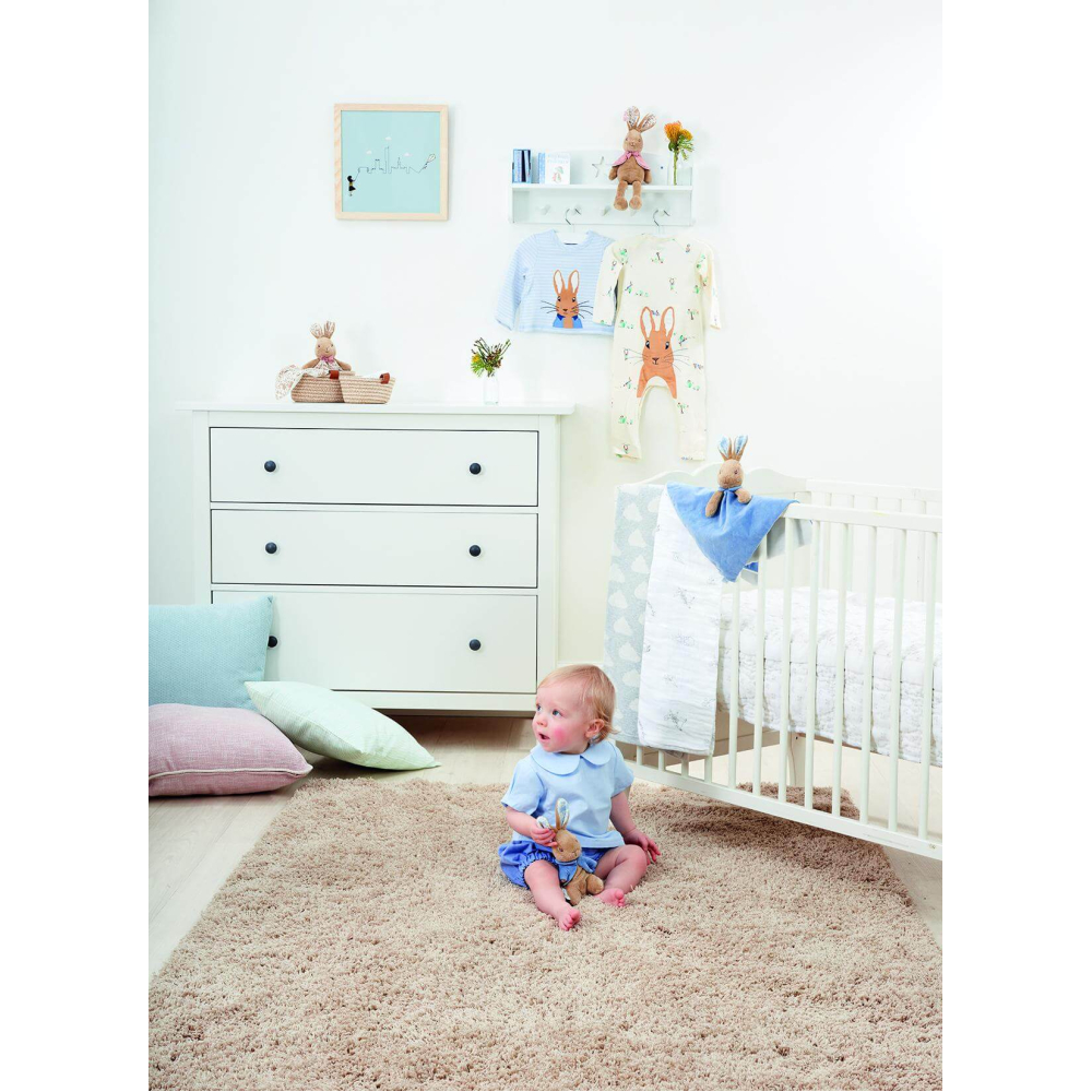 Enjoy plenty of snuggles and cuddles with this super soft Signature Peter Rabbit Soft Toy, from Rainbow Designs, that makes a truly special companion to enjoy playtime adventures with as well as a cuddly best friend when it comes to snuggling up at bedtime! This adorable Peter Rabbit soft toy, in his famous blue jacket, is produced from the finest fabrics and finished with all the beautiful trimmings and details you would expect in this very special gift, with bespoke labels and finished with a special Peter Rabbit pattern. Peter's bean filled tummy makes him extra cuddly and his long limbs make him easy for little ones to hold onto, and take along on mischief making adventures! Beatrix Potter's Peter Rabbit is one of the most traditional and much-loved children's characters, and this super cuddly toy is perfect way of sharing happy memories and traditional values from your own childhood, and providing a life-long cuddly friend for little one.