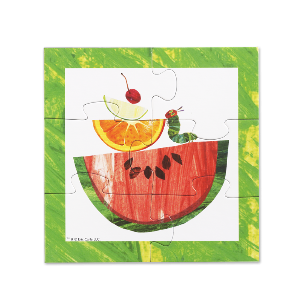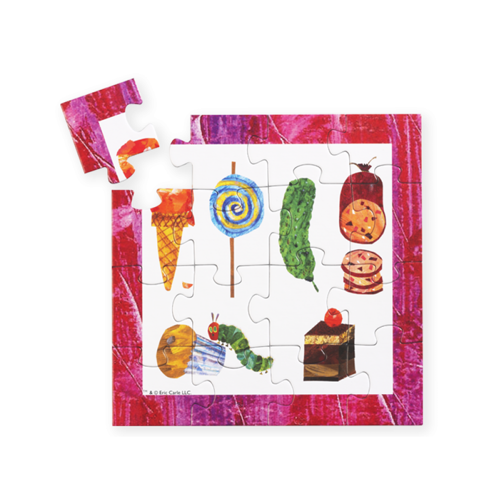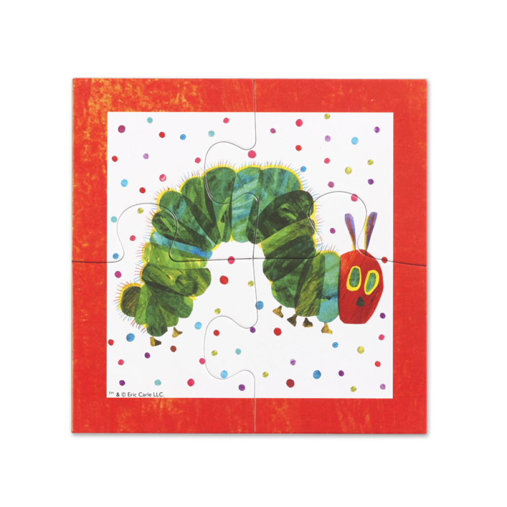 This set consists of 4 puzzles with brightly coloured pictures from the book Caterpillar Never Enough by Eric Carle. In it, the little caterpillar goes in search of delicious morsels, which can also be found on the puzzles. The youngest puzzlers start with a 4-piece puzzle and those who are ready for the next challenge can try a 6, 9 or 16-piece puzzle. Happy puzzling!
