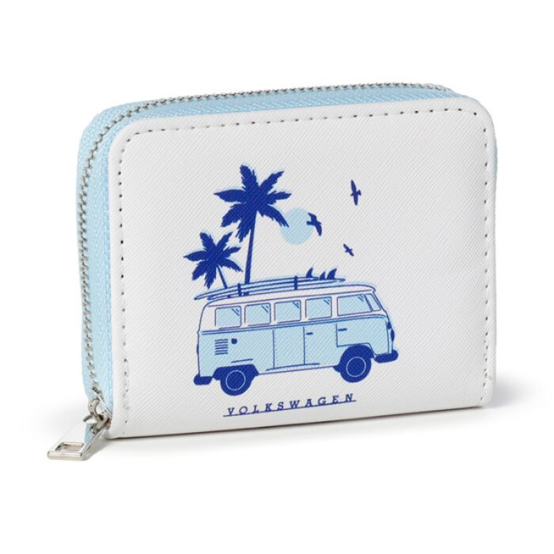 Featuring the iconic VW T1 camper van in blue and white, this compact wallet combines style with practicality.