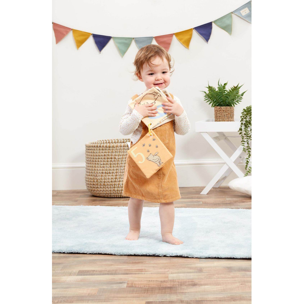 Time for on-the-go fun with Winnie the Pooh! Little ones will love the beautifully illustrated Disney Classic Pooh Play and Go Squares that follow Pooh and his friends Tigger, Piglet and Eeyore as they count up to six. Easy to grab and featuring textured patches, a crinkley page and a squeaky page, this super soft book encourages sensory play and helps to develop baby's early motor skills. The Play and Go Squares are suitable from birth and perfect for both story time and play time, as little ones explore the fun textures, sounds and classic Winne the Pooh illustrations. Making a perfect gift to help develop baby's sensory skills whilst encouraging a love of numbers and counting from a very young age, this fun-packed soft book also comes with a handy clip ring, for quick and easy attachment to a bag or pram.