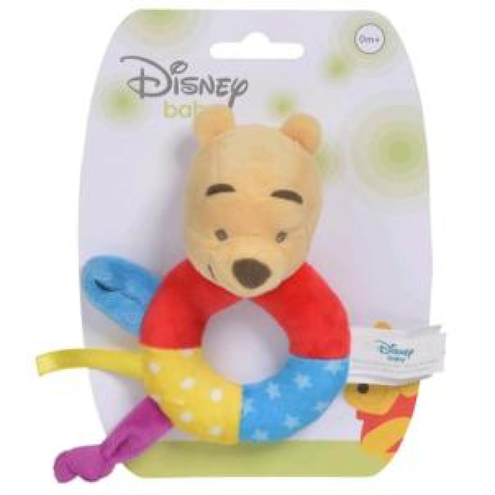 Winnie the Pooh ring rattle – ultra-soft plush – 14 cm – baby rattle toy