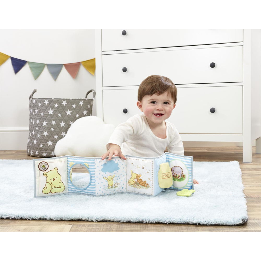 Time for play and discovery with Disney's Winnie the Pooh! Classically styled on the famous character from A.A Milne's heart-warming Tales from the Hundred Acre Wood storybooks, this beautiful fabric Winnie the Pooh Unfold and Discover Activity Toy is a wonderful developmental toy to help encourage and explore the bond between baby and parent through play. This fun-packed Unfold and Discover Activity Toy features multiple textures, crinkles and activities and includes a baby-safe mirror, teether and high contrast colours for early visual stimulation, encouraging sensory play and helping to develop baby's early motor skills. Perfect for encouraging tummy time, this exquisite Winnie the Pooh Activity Toy is so versatile in the way it can be used and is easy to store and transport.