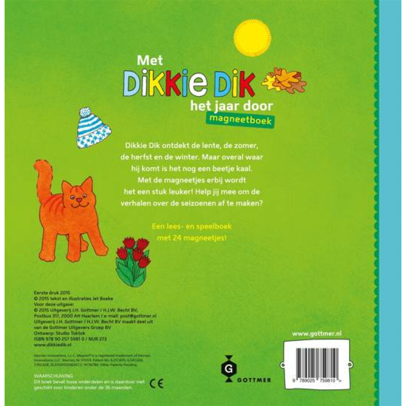 "With Dikkie Dik Through the Year" is the first magnetic book of Dikkie Dik. Discover the four seasons with Dikkie Dik and his friends!