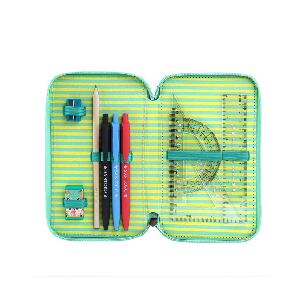 L’étui triple Piggy Pig Bangoberry est l’accessoire scolaire idéal pour les enfants créatifs ! Avec trois compartiments à fermeture éclair, il est entièrement garni de fournitures : crayons de couleur, feutres, stylos, règle, gomme, taille-crayon et plus encore.