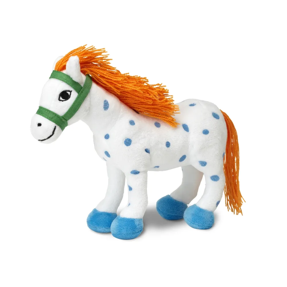 Rencontrez le gentil cheval tacheté de Fifi Brindacier ! Chaque enfant peut désormais câliner son propre Oncle Alfred et jouer avec lui. Faites comme Fifi et soulevez le cheval au-dessus de votre tête ! Cette poupée extraordinairement douce, aux yeux et à la bride brodés, mesure 22 cm de haut et existe en deux autres tailles.