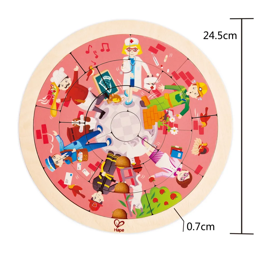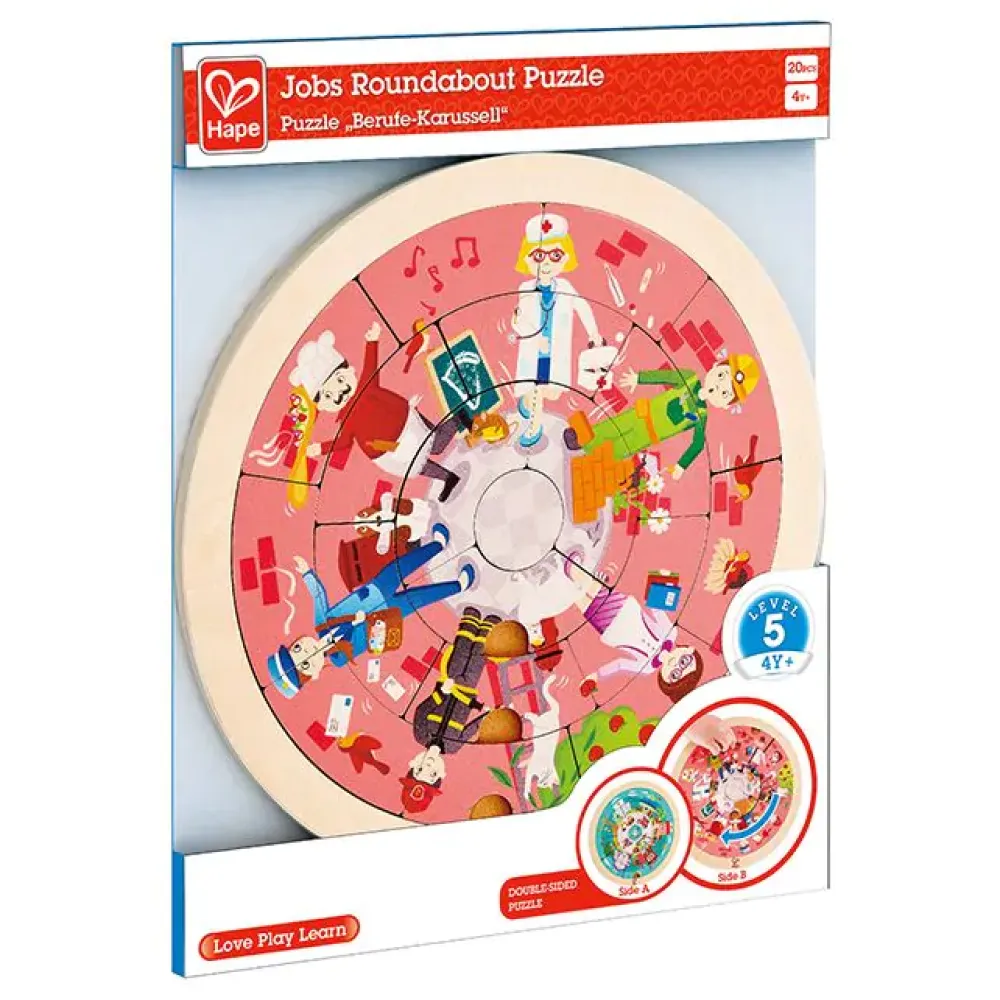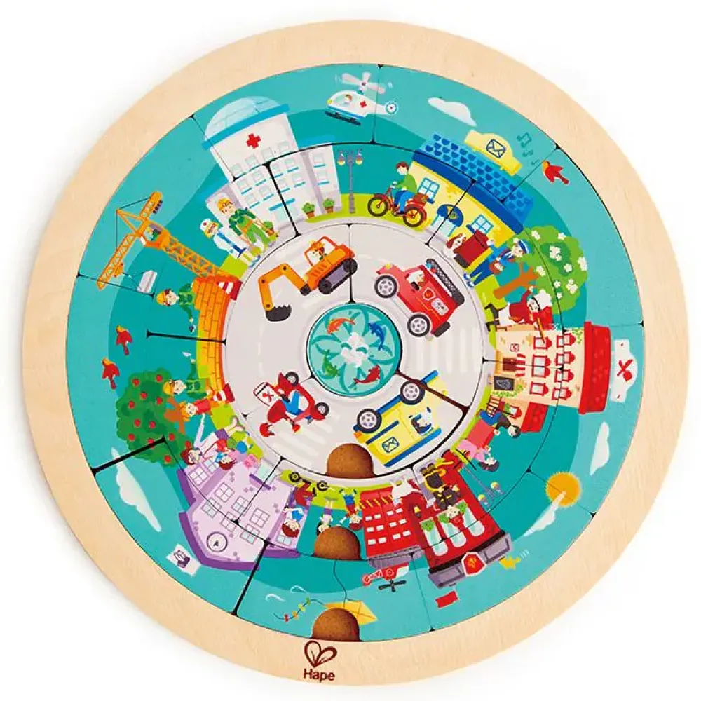 Chacun a un rôle important à jouer pour faire fonctionner la ville ! Ce puzzle recto-verso permet de découvrir les métiers de pompier, d'enseignant, de postier, de cuisinier, de médecin et de bâtisseur.