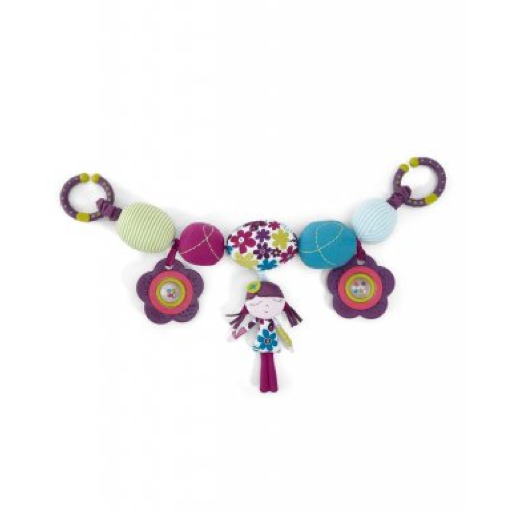 Peut être fixé à la plupart des landaus, poussettes et porte-bébés grâce aux deux anneaux de dentition. - Les anneaux de dentition en C permettent à bébé de se soulager pendant les poussées dentaires.