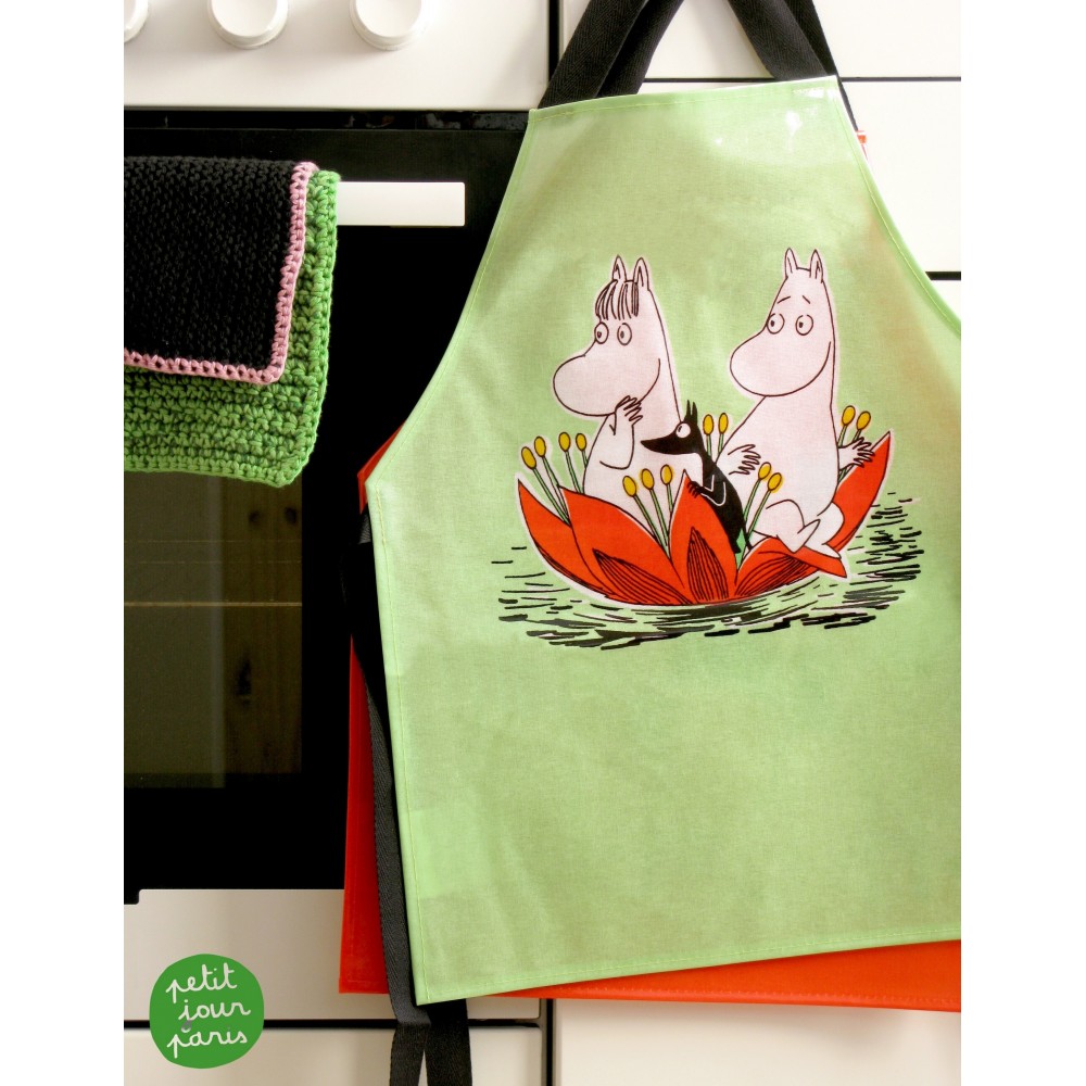 Garanti sans phtalates, ce tablier est à la fois sûr, pratique et plein de charme Moomin.