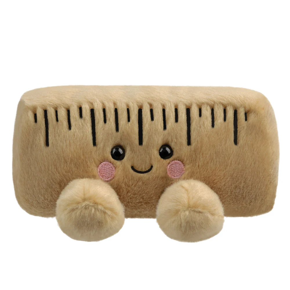 Voici la peluche Palm Pals Roman Ruler, la dernière nouveauté de la très populaire collection Palm Pals d'Aurora. La peluche Roman Ruler est une peluche en forme de règle souriante, mignonne et câline, de couleur marron, remplie de haricots, qui tient parfaitement dans la paume de la main. Idéal pour faire des câlins !