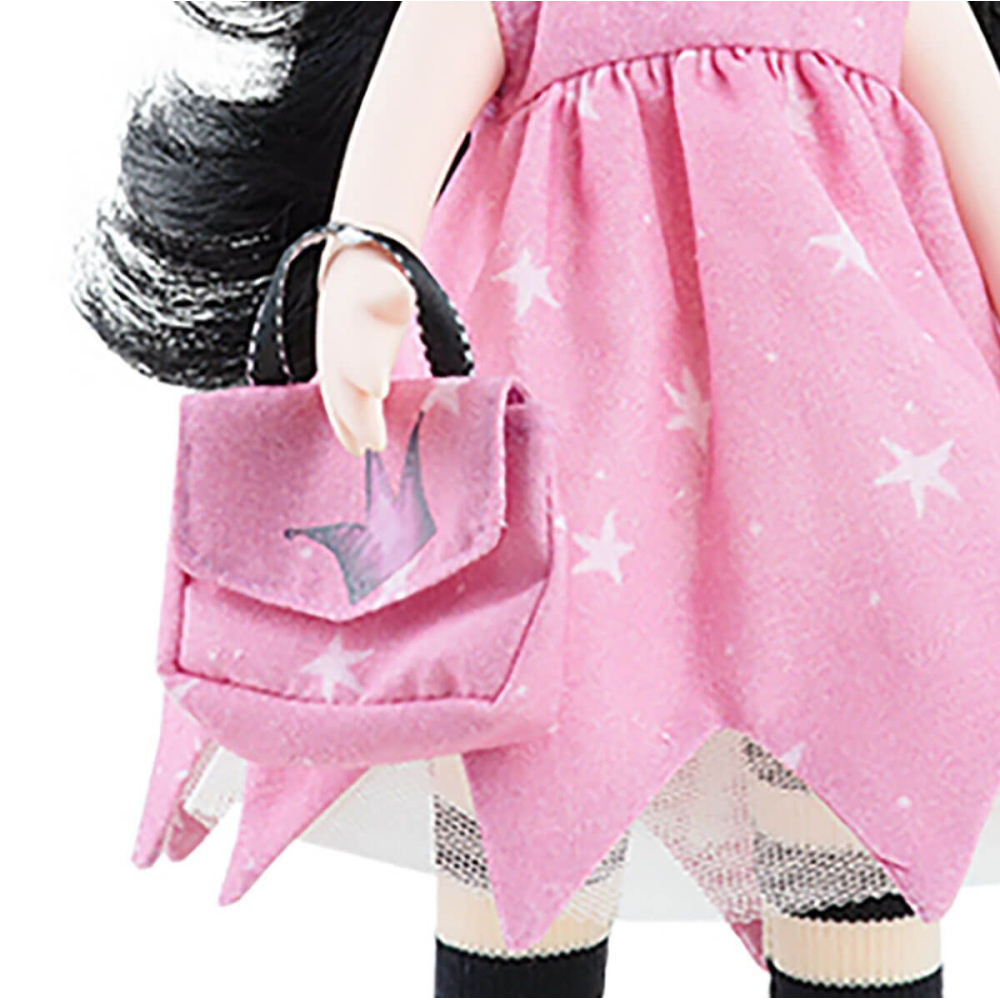 Dreaming porte une robe rose sans manches imprimée d'étoiles, une jupe en filet, des collants en maille rayée, des chaussures Mary Janes roses et une jolie couronne perchée sur la tête. Elle porte un sac à main rose assorti, orné d'une couronne, et est parfumée à la rose et au chèvrefeuille. Grâce à ses membres mobiles et à son pas rentré, elle peut se tenir debout toute seule. Elle est donc prête pour toutes les aventures ! Le complément idéal à toute collection de Gorjuss.