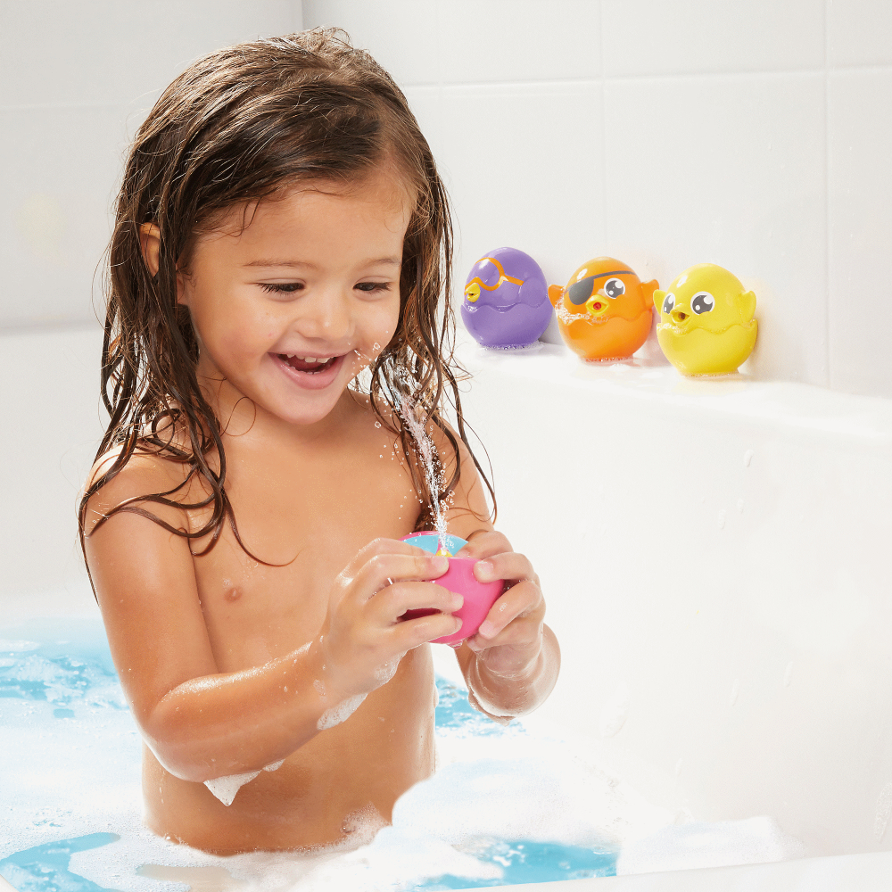 - Les œufs Hide & Squeak s'invitent dans la baignoire - prêts pour des heures de jeu aquatique.