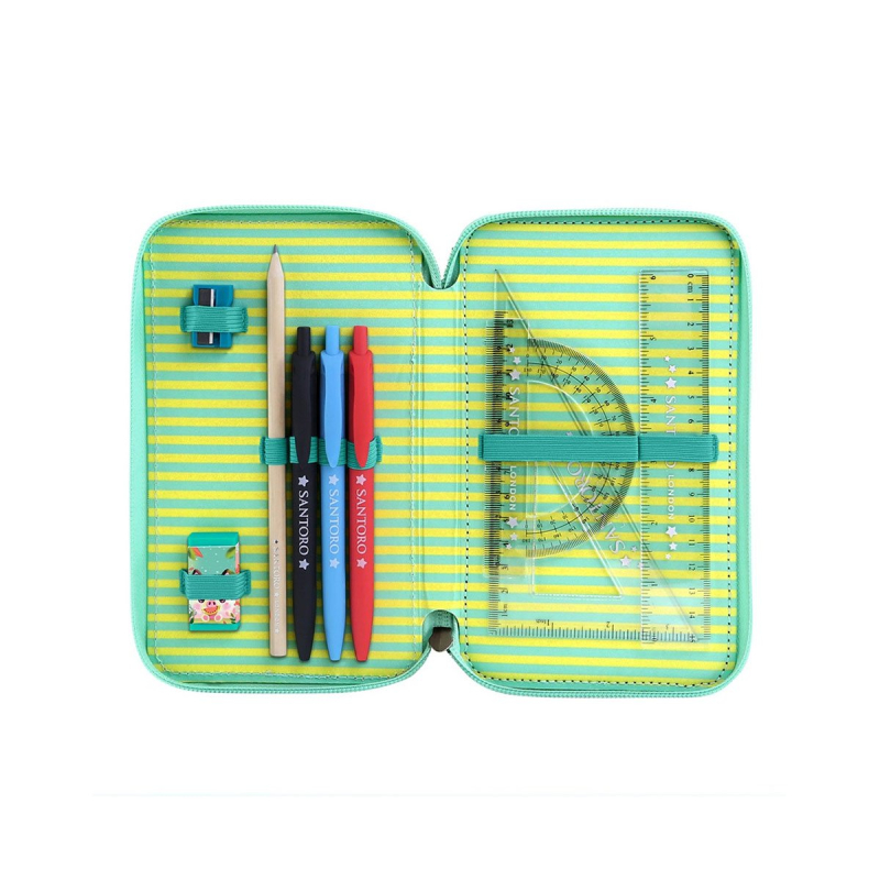Het Bangoberry Piggy Pig drievaks gevuld etui is de perfecte schoolaccessoire voor creatieve kinderen! Het etui heeft drie ruime ritsvakken, elk gevuld met een complete set schrijfwaren: kleurpotloden, viltstiften, balpennen, een liniaalset, gum, slijper en meer.