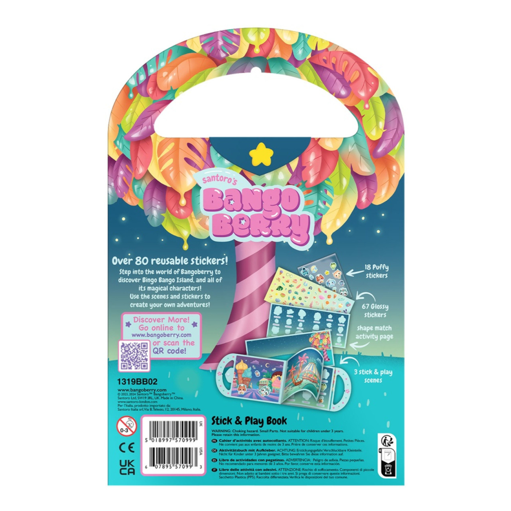 Dompel je onder in de magische avondwereld van de Bangoberry Bunch met dit Stick & Play Boek – By Night. Het boek bevat meer dan 80 herbruikbare stickers en verschillende sfeervolle scènes waarop kinderen eindeloos kunnen spelen en creatief bezig zijn.