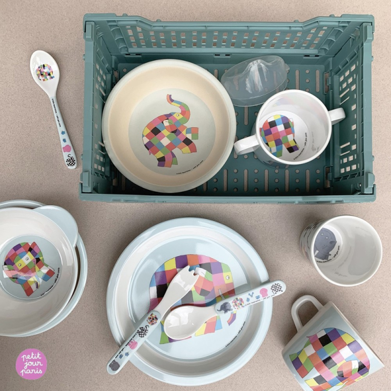 Een prachtig en praktisch 5-delig servies in Elmer-thema, perfect voor de eerste maaltijden van je kindje! Dankzij de ergonomische randen leert je kind zelfstandig eten op een speelse en veilige manier.
