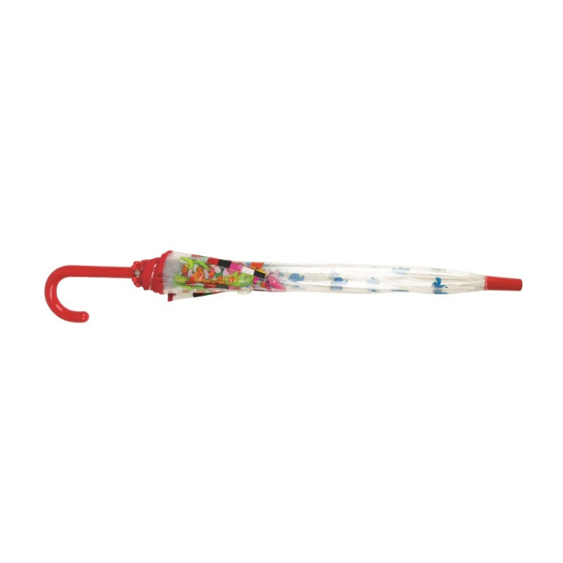 Deze vrolijke, volledig transparante paraplu met een kleurrijke Elmer-illustratie laat kinderen de regen bewonderen zonder nat te worden! Dankzij de veilige sluitsysteem en drukknop sluit je de paraplu snel en eenvoudig. Ideaal voor regenachtige dagen vol kleur.