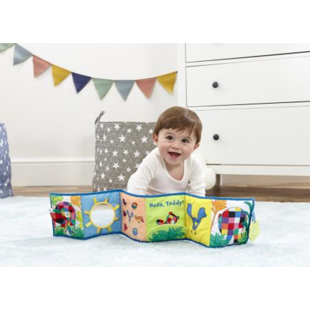Tijd om te spelen en te ontdekken met Elmer, het kleurrijke patchworkolifantje van David McKee! De grappige, vrolijke gave van Elmer ligt in het accepteren van wie hij is en het vieren van ieders verschillen, en het levendige Elmer Ontvouw en Ontdek Activiteiten Speelgoed is prachtig ontwikkelingsspeelgoed om de band tussen baby en ouder spelenderwijs aan te moedigen en te ontdekken. Het leuke Activity Toy heeft verschillende texturen, kreukels en activiteiten en bevat een babyveilige spiegel, speentje en contrasterende kleuren voor vroege visuele stimulatie, het aanmoedigen van zintuiglijk spel en het helpen ontwikkelen van baby's vroege motorische vaardigheden. Dit Elmer Activity Toy is perfect voor het stimuleren van de buiktijd en is zo veelzijdig in de manier waarop het gebruikt kan worden en makkelijk op te bergen en te vervoeren.