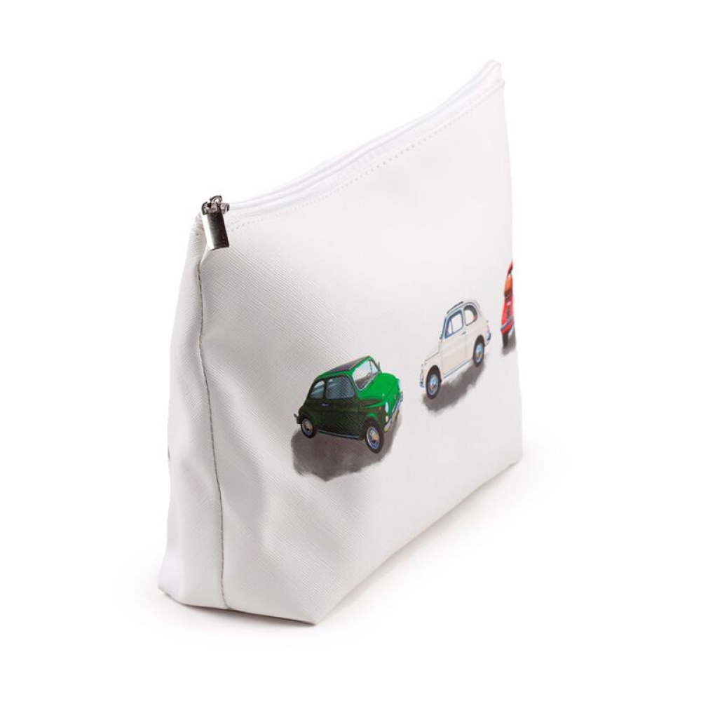 Reis in stijl met deze Fiat 500 PVC toilettas large – een ode aan Italiaans design en tijdloze elegantie.