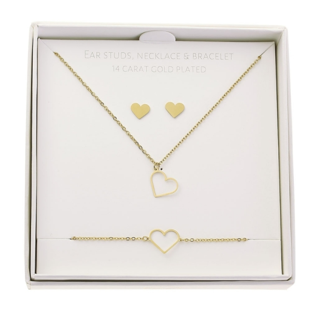 Gift Set Juwelen Hart verguld goud roestvrij staal