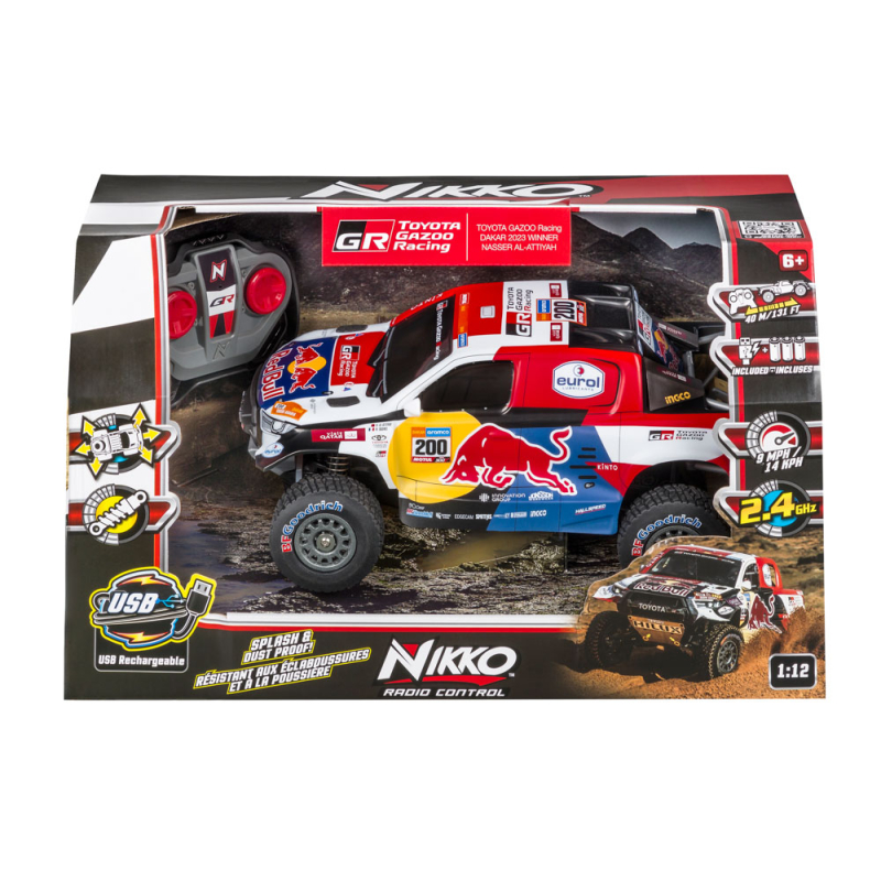 Ervaar de sensatie van echte rallysport met de Nikko 1:12 ProTrucks – Toyota Gazoo Racing Dakar 2023 Winner, bestuurd door Nasser Al-Attiyah! Deze grote RC-truck is gebouwd voor extreme terreinomstandigheden: modder, zand, sneeuw en ruwe ondergronden zijn geen enkel probleem dankzij het spat- en stofdichte chassis en de krachtige terreingrijpende banden.