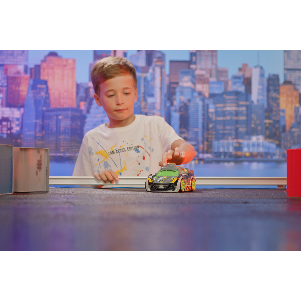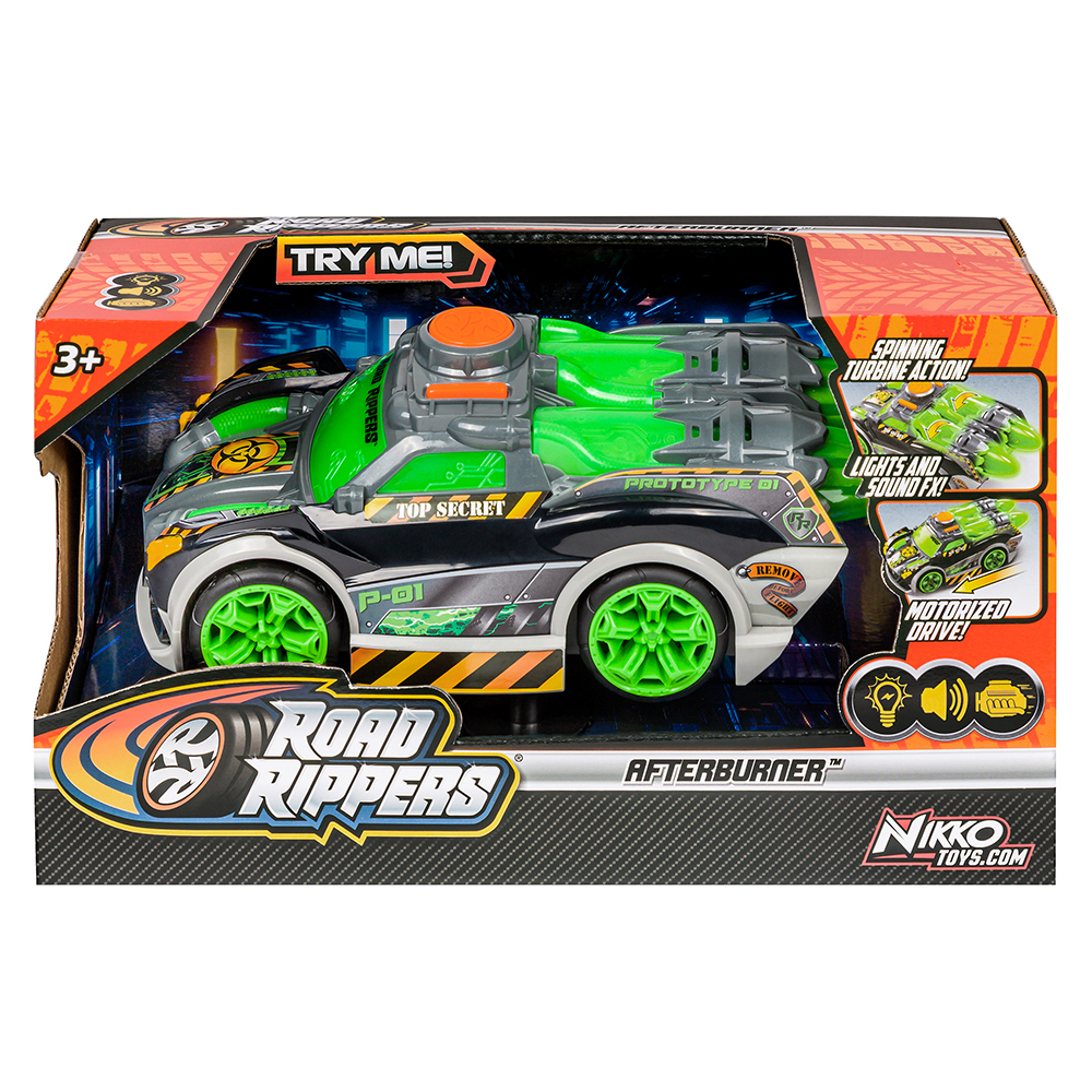 De stoere styling met groene accenten, stevige banden en futuristisch ontwerp maakt hem geliefd bij jonge racefans die houden van snelheid en actie. Dankzij de meegeleverde batterijen is de Afterburner meteen klaar om te racen. Perfect voor kinderen vanaf 3 jaar.