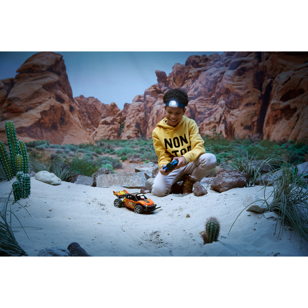 Dankzij de realistische werkende koplampen kan het racen gewoon doorgaan zodra het donker wordt. Met een topsnelheid van 7,5 km/u, sterke terreinbanden en volledige multidirectionele besturing is Hyper Blaze dé keuze voor jonge coureurs vanaf 5 jaar.
