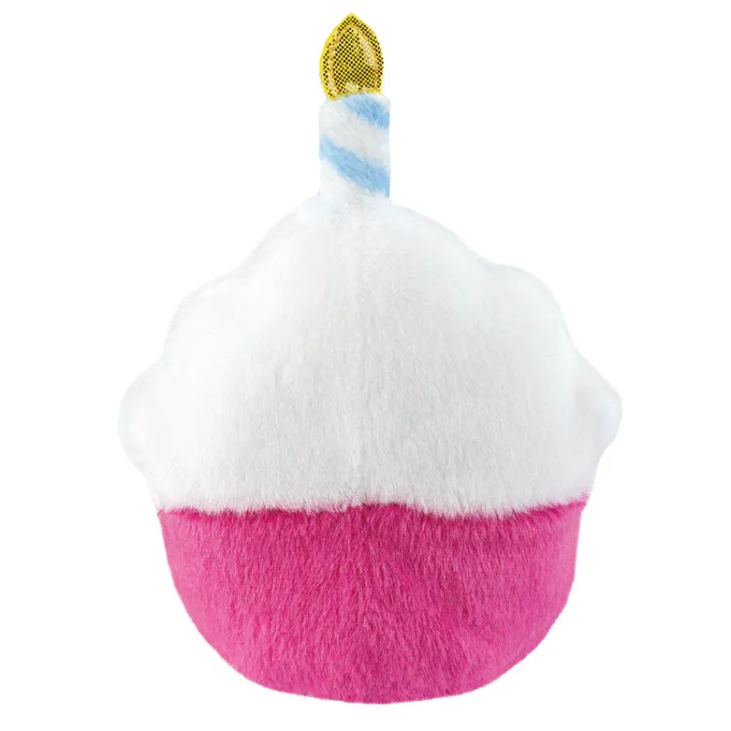 Palm Pals Sparkle Birthday Cupcake knuffel heeft de schattigste glimlach die iedereen die hij tegenkomt een glimlach op het gezicht tovert.