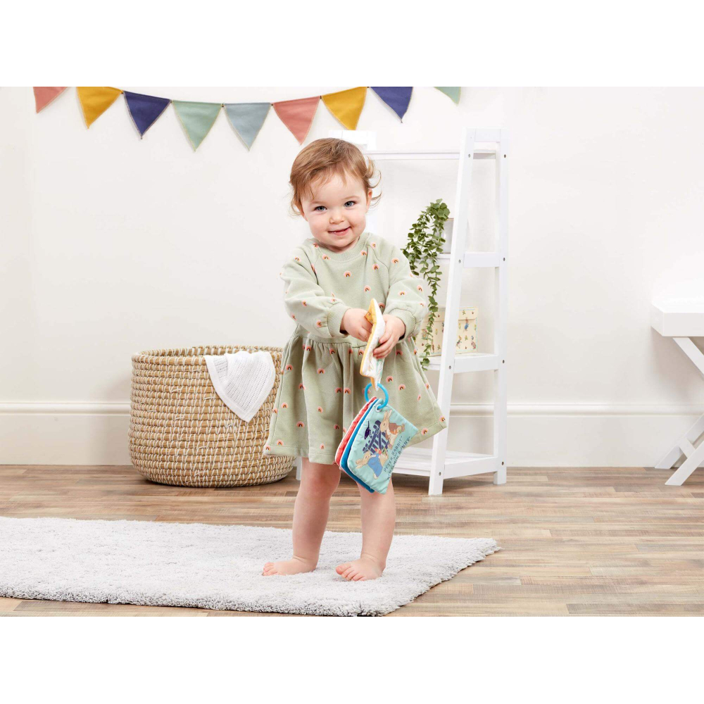 Tijd voor onderweg plezier met Pieter Konijn! De kleintjes zullen dol zijn op de prachtig geïllustreerde Pieter Konijn Speel en Ga Pleinen met Pieter en zijn vrienden zoals Benjamin Konijn, Flopsy, Mevrouw Tiggy-Winkle en Eekhoorn Nootje. Het superzachte boek is gemakkelijk vast te pakken en heeft verschillende texturen, een knisperende pagina en een piepende pagina. Het stimuleert zintuiglijk spel en helpt de vroege motorische vaardigheden van baby's te ontwikkelen. De Play and Go Squares zijn geschikt vanaf de geboorte en perfect voor zowel verhaaltijd als speeltijd, als kleintjes de leuke texturen, geluiden en klassieke illustraties van de geliefde Beatrix Potter-personages ontdekken. Een perfect cadeau voor de jongste Pieter Konijn-fans, dit zachte boek vol plezier wordt ook geleverd met een handige ring, voor een snelle en eenvoudige bevestiging aan een kinderwagen, tas of autostoel.