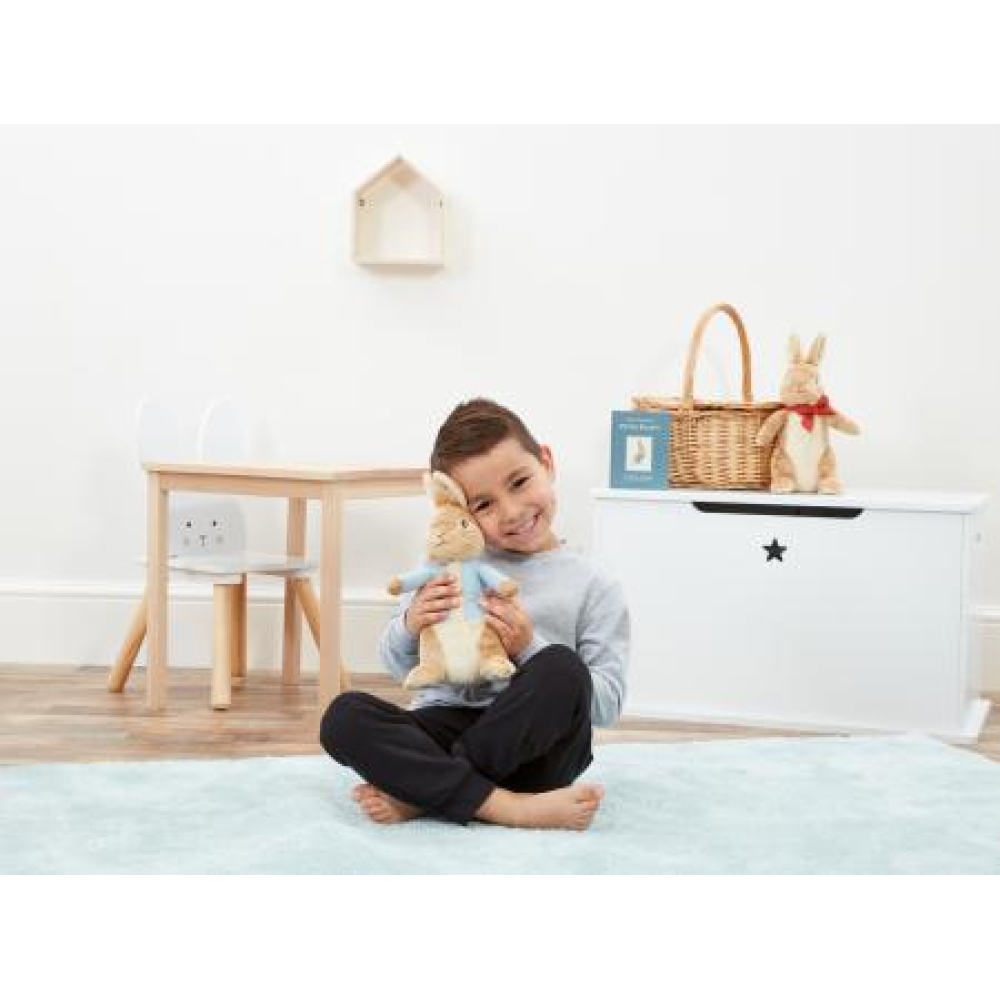 Tijd om te spelen Peter!', deze schattige Peter Konijn knuffel van Rainbow Designs is klaar om op avontuur te gaan, maar hij is ook superzacht en houdt van een dikke knuffel! Peter Rabbit van Beatrix Potter is een van de meest geliefde kinderfiguren en dit lieftallige konijntje van 24 cm, met zijn beroemde blauwe jasje en grote flaporen, is een heerlijk vriendje om mee te spelen en ook een superzacht en knuffelig gezelschap voor 's nachts. Dit speciale knuffelvriendje, dat geschikt is vanaf de geboorte, zal de hele kindertijd aan de zijde van je kleintje staan.