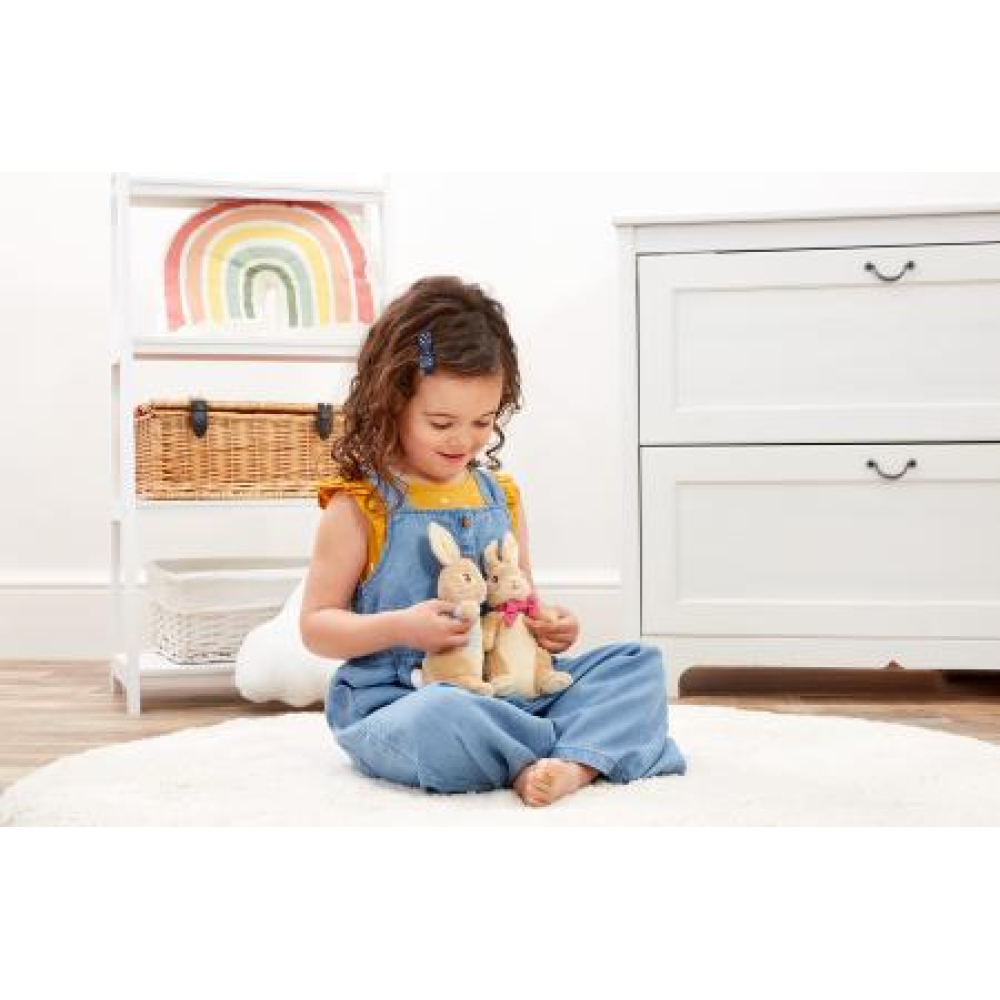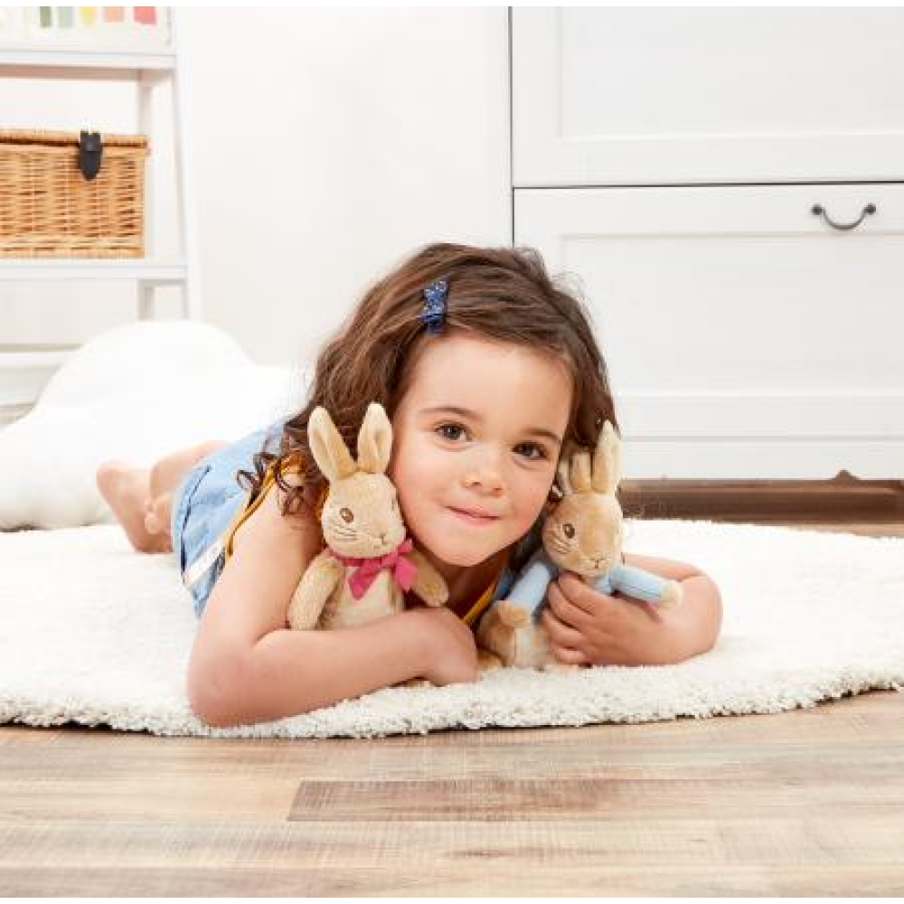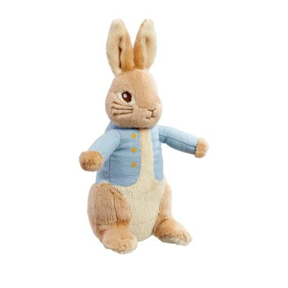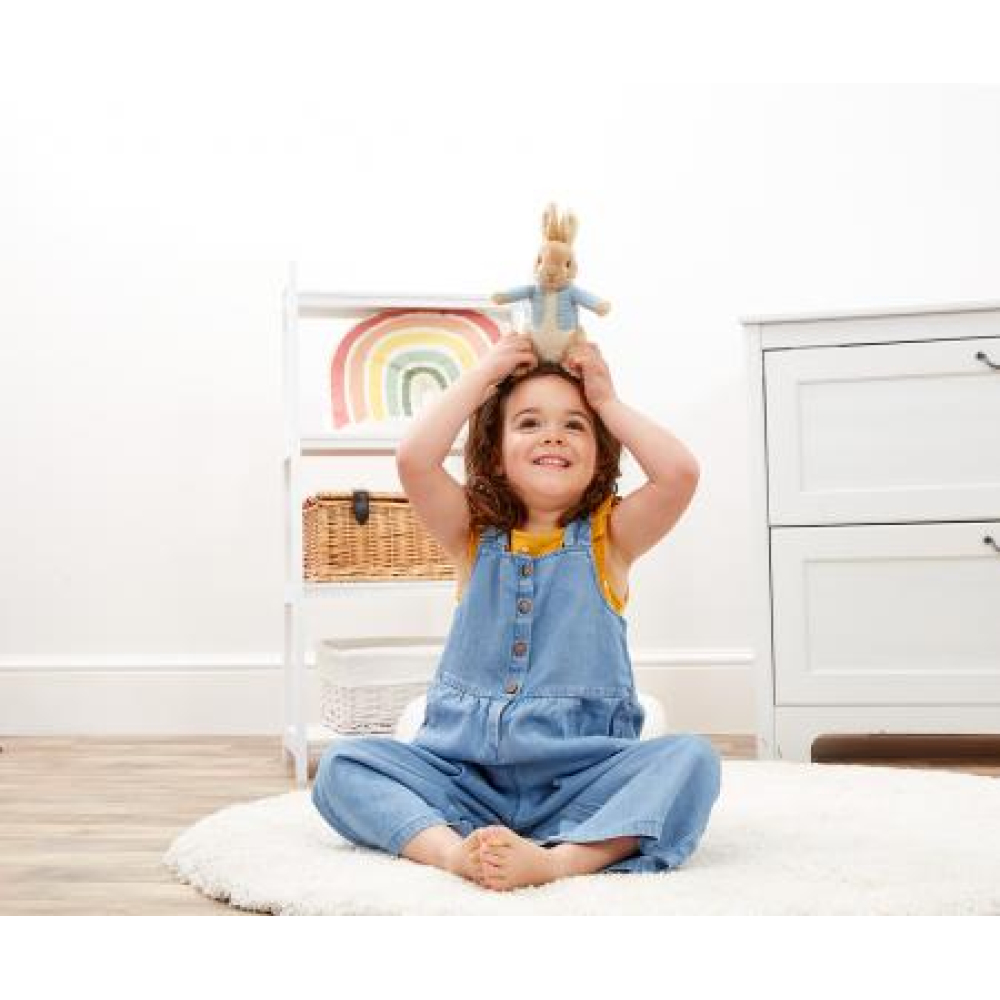 Tijd om te spelen Peter!', deze schattige Peter Konijn knuffel van Rainbow Designs is klaar om op avontuur te gaan, maar hij is ook superzacht en houdt van een dikke knuffel! Peter Rabbit van Beatrix Potter is een van de meest geliefde kinderfiguren en dit lieftallige konijntje van 24 cm, met zijn beroemde blauwe jasje en grote flaporen, is een heerlijk vriendje om mee te spelen en ook een superzacht en knuffelig gezelschap voor 's nachts. Dit speciale knuffelvriendje, dat geschikt is vanaf de geboorte, zal de hele kindertijd aan de zijde van je kleintje staan.