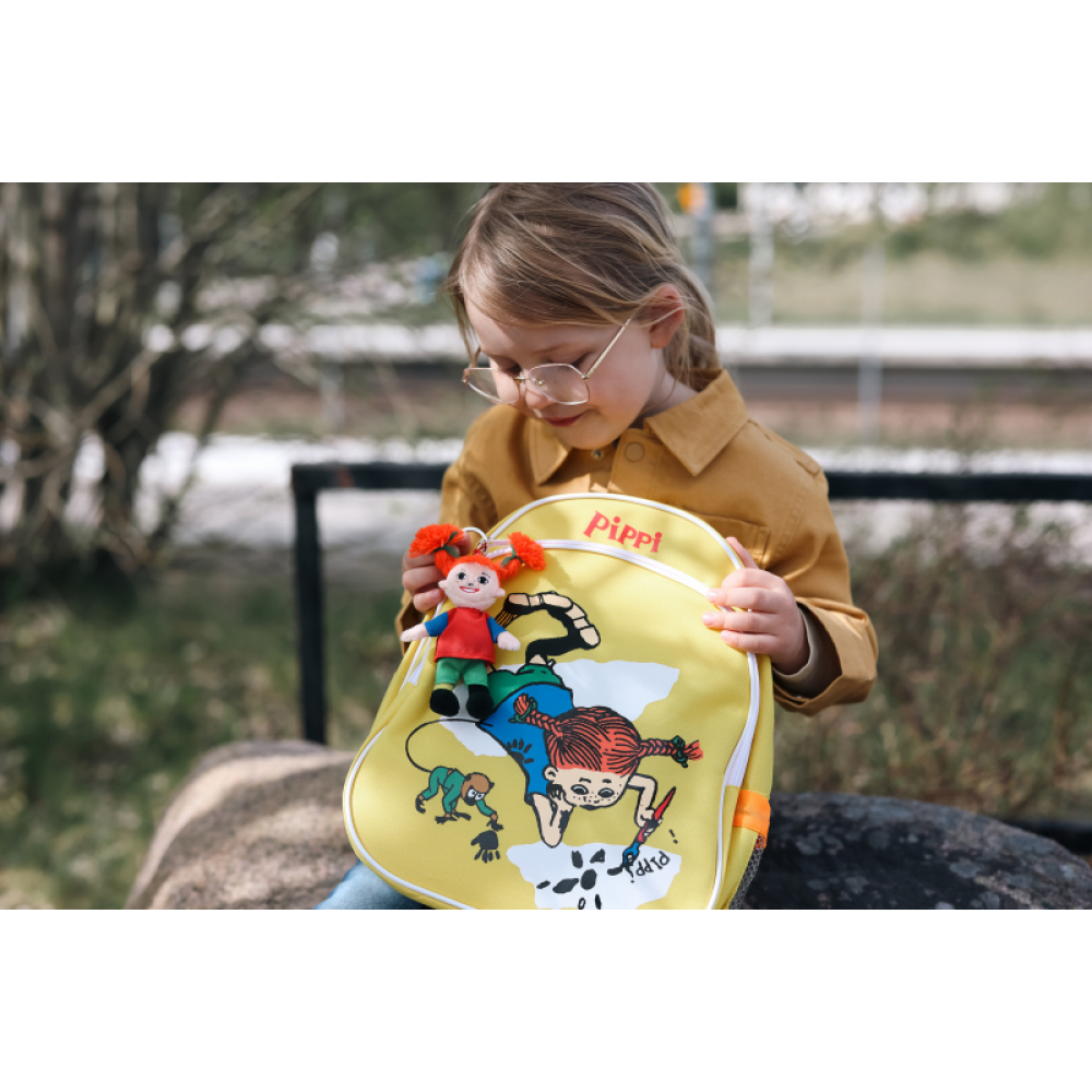 Gele rugzak van Pippi voor alle kleine alledaagse avonturiers! De rugzak is perfect voor alle gelegenheden voor de jongere kinderen. Of het nu gaat om een picknick, kleding, overnachten bij oma en opa of een avontuur in de tuin, de tas kan mee! De borstband houdt de rugzak op zijn plaats en met het handvat kan mama of papa helpen dragen als hij te zwaar wordt. Nu is het kind klaar voor alle speelse avonturen met Pippi!
