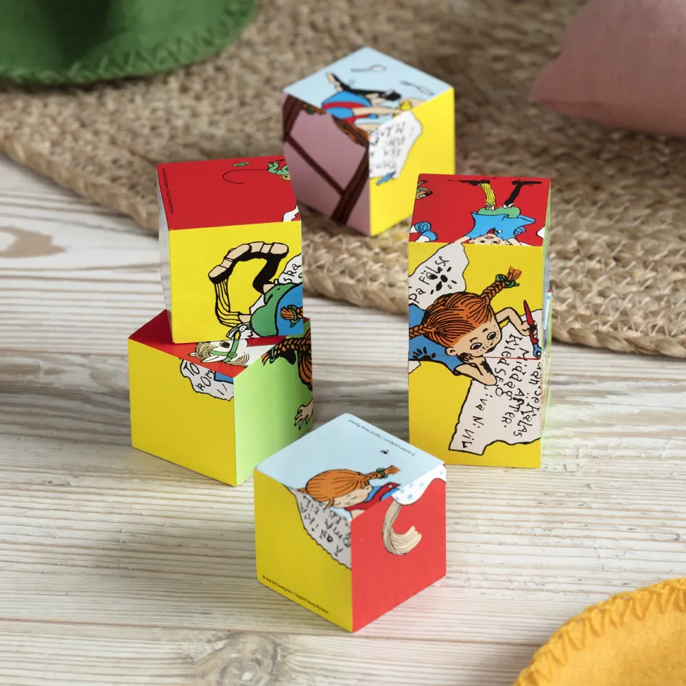 Met deze prachtige blokken heb je zes verschillende Pippi-puzzels in één. Elke kant heeft zijn eigen achtergrondkleur, zodat je gemakkelijk kunt zien welke kanten van de blokken bij elkaar horen. De illustraties op de puzzelblokken zijn gemaakt door Ingrid Vang Nyman. Afmetingen 13,5x9 cm. Afmetingen 13,5x9 cm.