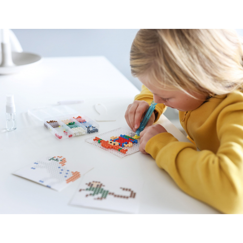 Je legt de kralen op het patroonbord en besproeit ze met water.