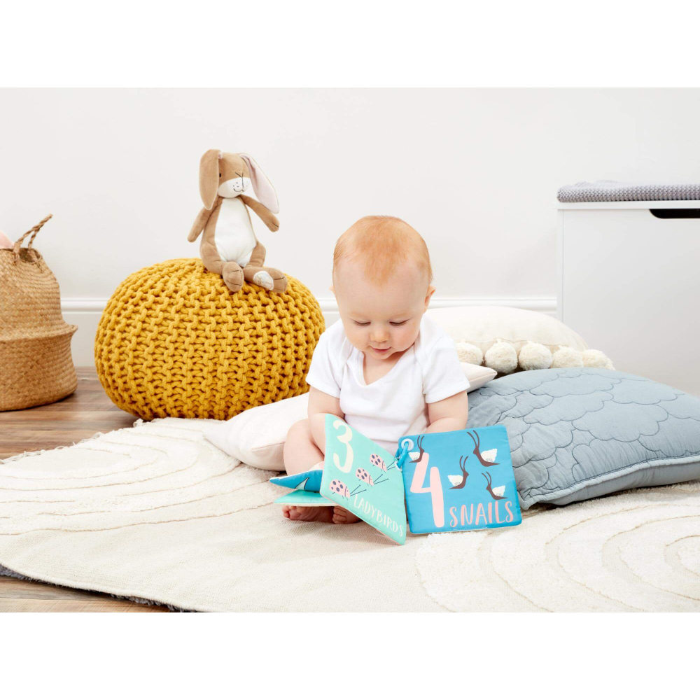 Tijd voor onderweg plezier met de schattige Hazeltje! De kleintjes zullen dol zijn op de vrolijk geïllustreerde Raad eens hoeveel ik van je hou speel en ga vierkantjes die tot zes tellen. Dit superzachte boek is makkelijk vast te pakken voor kleine handjes en heeft textuurvlakken, een pagina met knispergeluiden en een piepende pagina. Het helpt baby's om hun fijne motoriek te ontwikkelen en stimuleert een prille liefde voor getallen en tellen. Dit leuke, zachte boek is een perfect cadeau en wordt geleverd met een handige klemring voor snelle en eenvoudige bevestiging aan een tas of kinderwagen.