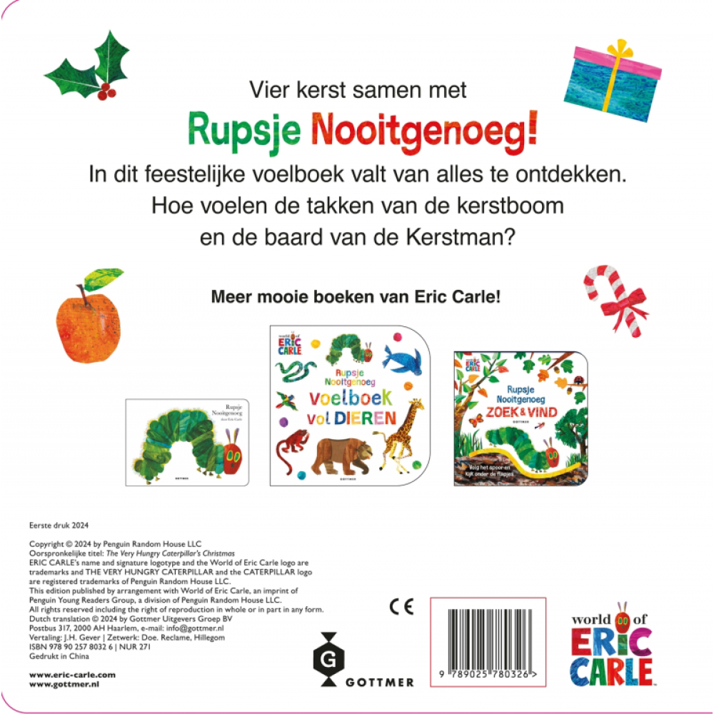 Rupsje Nooitgenoeg maakt de eerste feestdagen van de kleintjes nog specialer! Dankzij het prachtige en stevige voelboek 'Rupsje Nooitgenoeg - Het is kerst!' kunnen peuters vanaf 18 maanden al kennismaken met de kleurrijke, winterse wereld van Eric Carle.