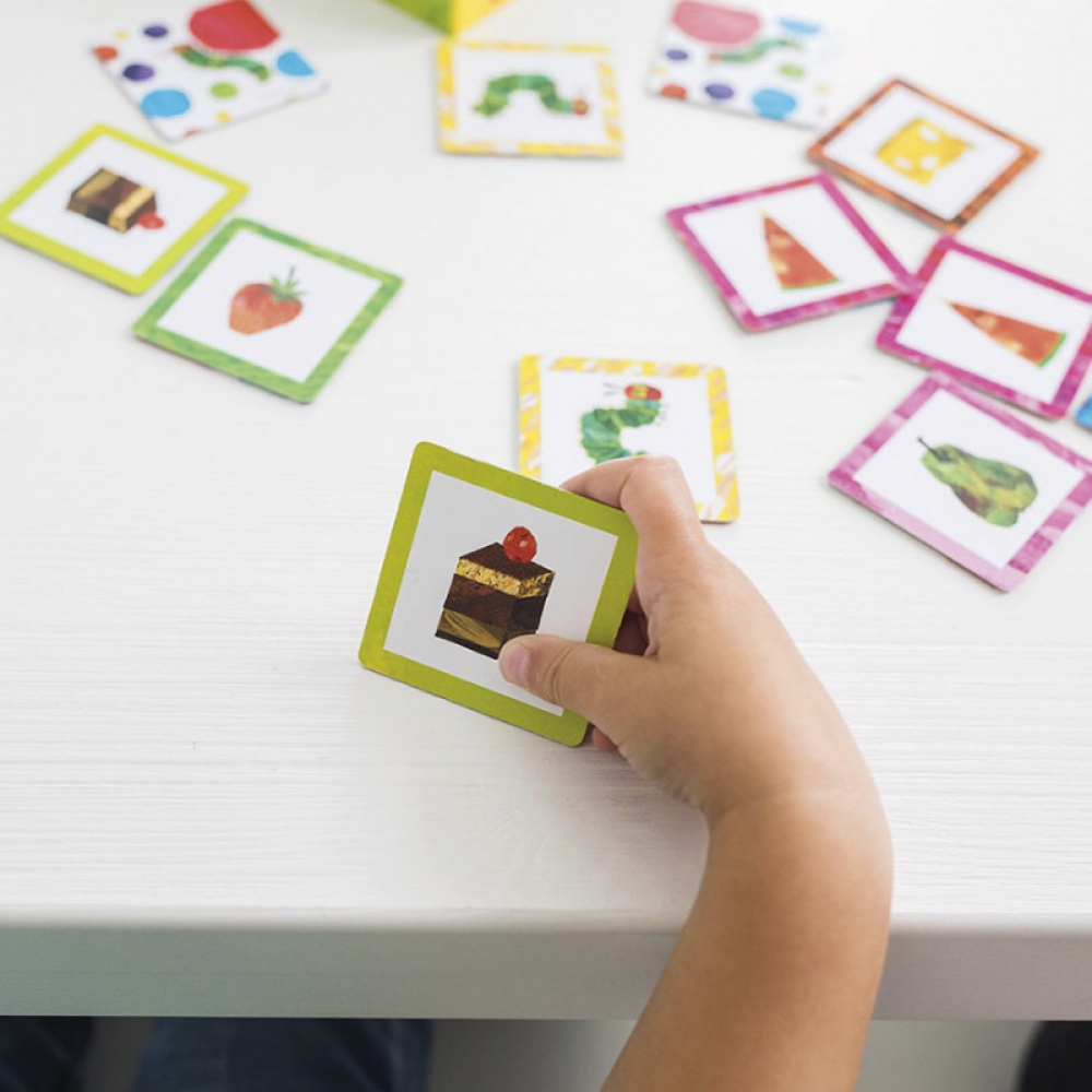 Waar o waar ligt toch dat andere knapperige appeltje? Of die heerlijke cupcake…? Om dit memospel te winnen moet je goed opletten om zoveel mogelijk plaatjes terug te vinden. Alle afbeeldingen van de lekkernijen komen uit het boek Rupsje Nooitgenoeg van Eric Carle, dat maakt dit geheugenspel extra leuk. Het spel bevat 40 kaartjes van zeer stevig karton. Voor kleinere kinderen is het verstandig eerst met een beperkt aantal kaartjes te beginnen.