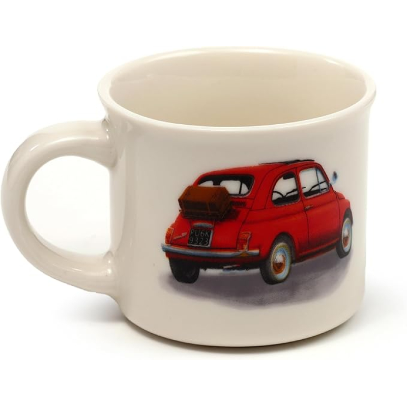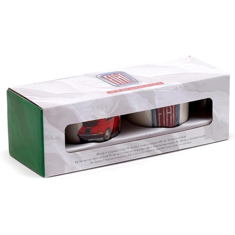 Begin je dag in stijl met deze set van 2 Fiat 500 espresso kopjes van porselein!