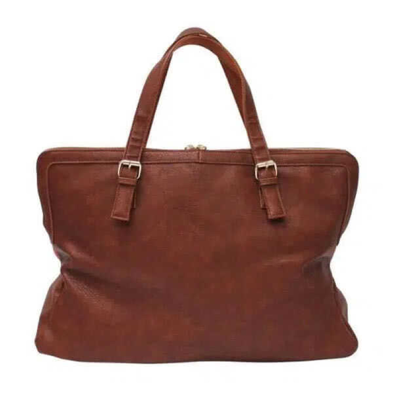 Gemaakt van kunstleer (PVC) en polykatoen met blauwe voering, biedt deze tas een ruime binnenkant met ritsvak en insteekvak — ideaal voor al je reisbenodigdheden. De stevige gespsluitingen en handgrepen in cognac-look geven hem een klassieke, luxe uitstraling.