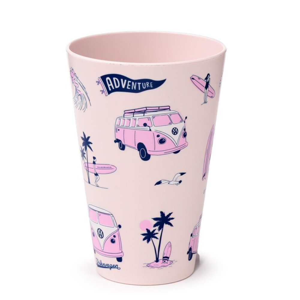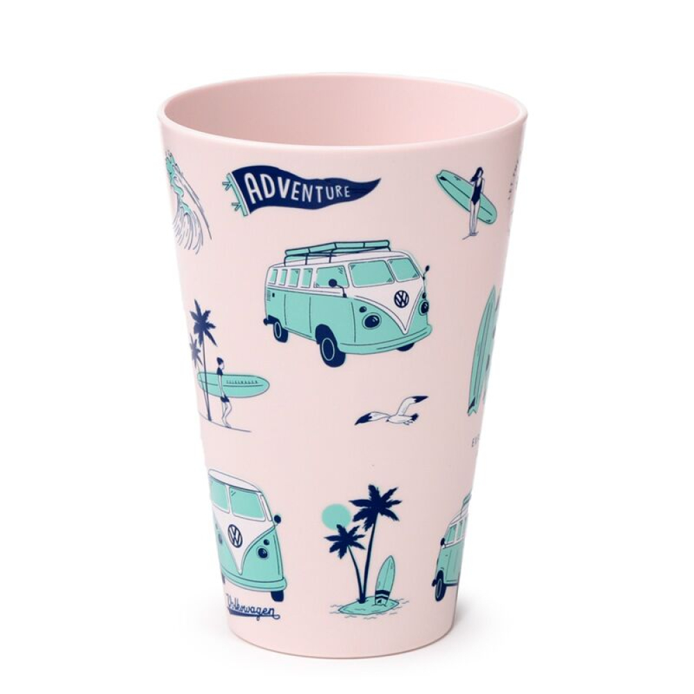 Breng kleur en retrostijl naar je picknick met deze Volkswagen VW T1 “Explore” set van 4 duurzame bekers (450 ml).