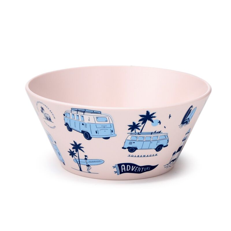Geniet in stijl van elke picknick of kampeervakantie met deze Volkswagen VW T1 “Explore” set van 4 duurzame kommen (600 ml).