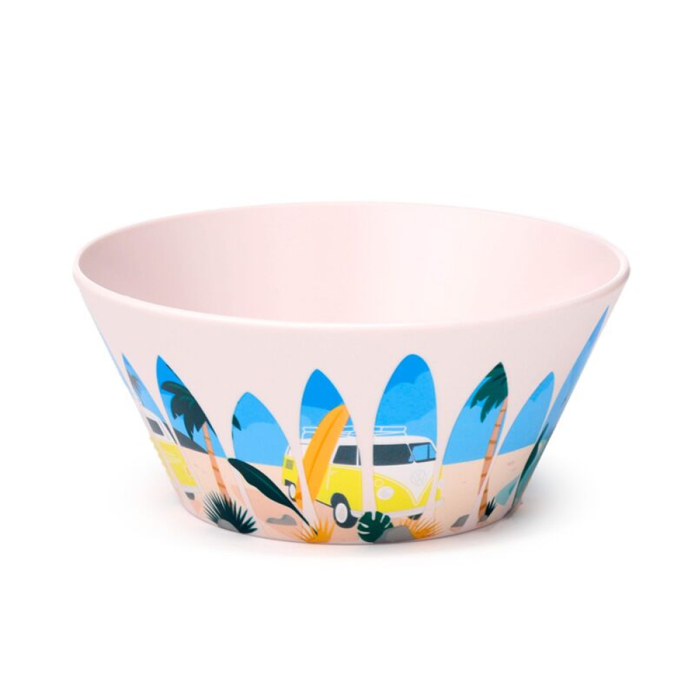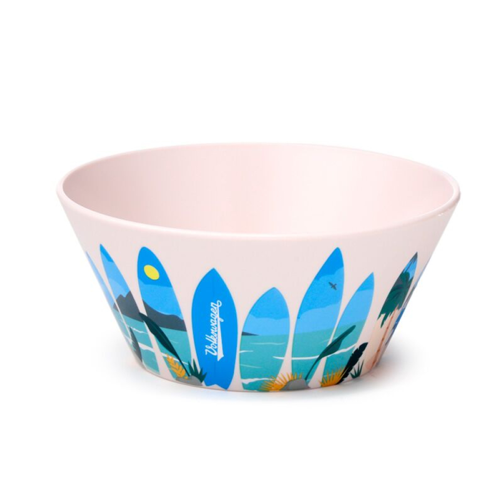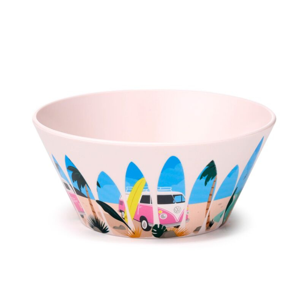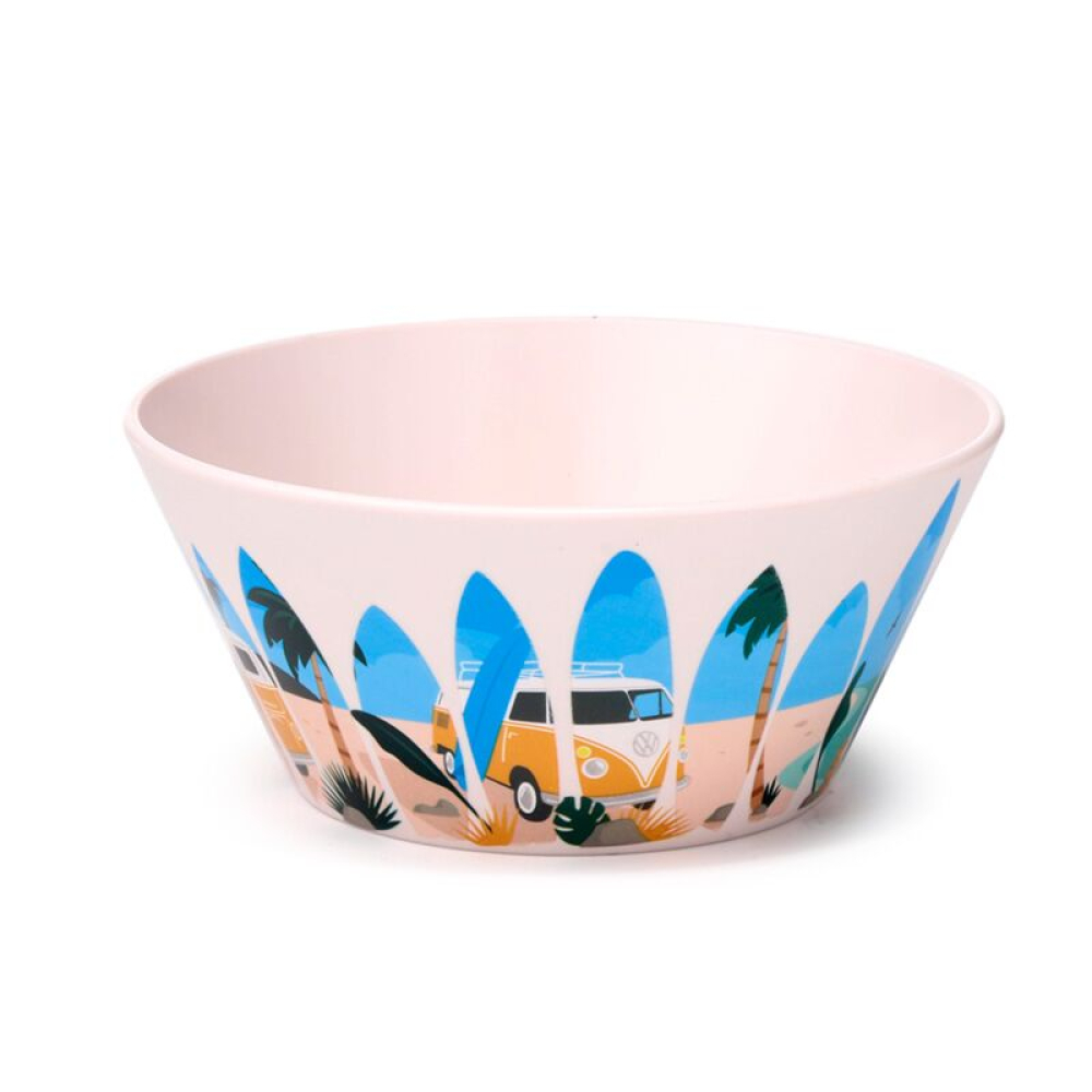 Geniet in stijl van elke picknick of kampeervakantie met deze Volkswagen VW T1 “Waves” set van 4 duurzame kommen (600 ml).