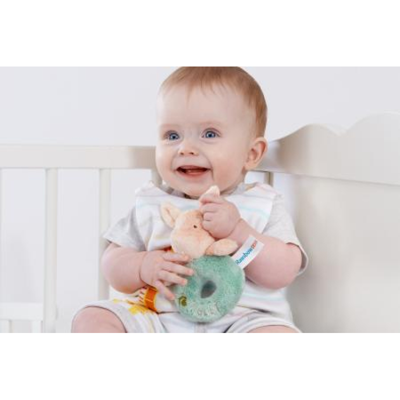 De rammelaar is vervaardigd uit hoogwaardig, getextureerd pluche met een zacht rammelgeluid dat de zintuigen stimuleert. De ringvormige constructie ligt comfortabel in kleine handjes, terwijl Knorretje’s vriendelijke gezichtje en zachte roze tinten voor een rustgevend gevoel zorgen.